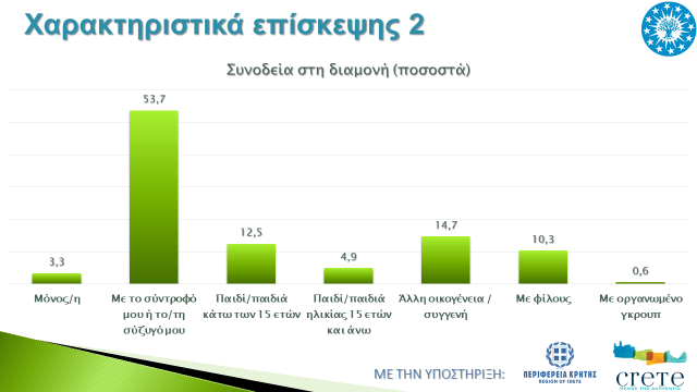 Αναφορικά με τον αριθμό ημέρων κατά τη διάρκεια των διακοπών τους, οι αλλοδαποί τουρίστες πραγματοποίησαν κατά μέσο όρο διακοπές 9 ημέρων, μία ημέρα παραπάνω σε σχέση με το 2019, ενώ παρατηρείται μεγάλη διαφορά σε σχέση με το 2019, στη συνοδεία διακοπών, αφού πάνω από τους μισούς αλλοδαπούς επισκέπτες πραγματοποιούν διακοπές με το/τη σύζυγο, ενώ έχουν μειωθεί πολύ οι οικογενειακές διακοπές με παιδιά.